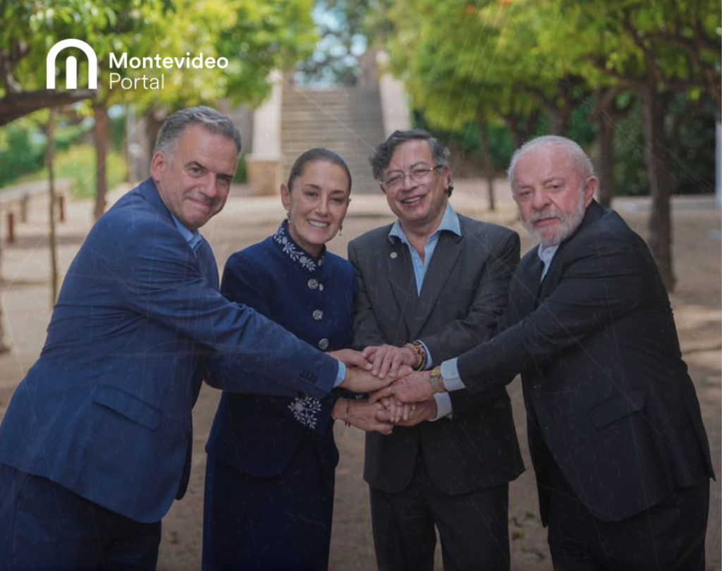 CON la presidenta Claudia Sheinbaum Pardo, posaron en Barcelona para esta fotografía de Reuters, los mandatarios de Uruguay, Yamandú Ramón Antonio Orsi Martínez; de Colombia, Gustavo Francisco Petro Urrego, y de Brasil, Luiz Inázio Lula da Silva.